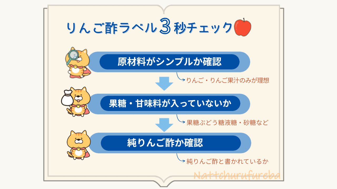 この3つだけ見れば、無添加りんご酢選びはほぼ失敗しません。